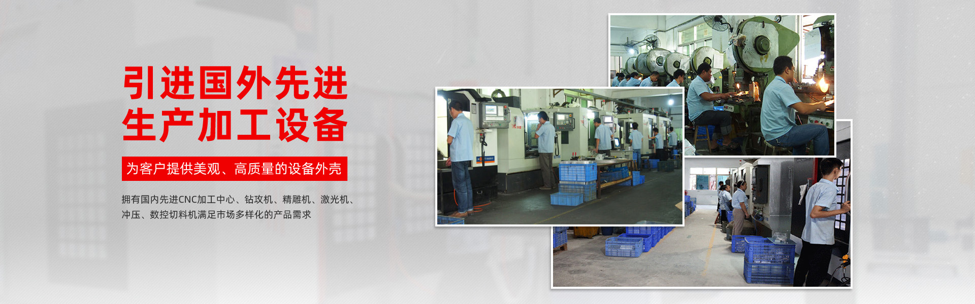 生產(chǎn)設備采用國內(nèi)CNC加工中心,鉆攻機,精雕機,激光機,滿足市場多樣化的產(chǎn)品需求!